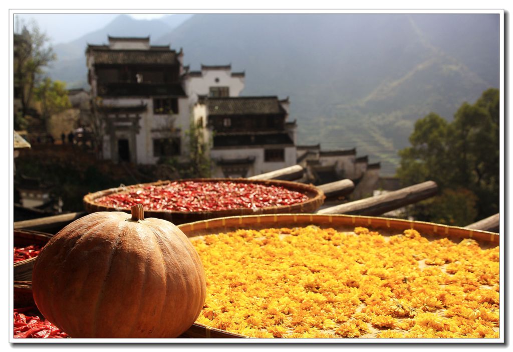 民间流行在立秋这天称体重,并和立夏时体重对比。因为人到夏天,缺乏胃口,饭食清淡,体重大都要减少一点,称为“苦夏”。秋风一起,胃口大开,就想吃点儿好的,补偿夏天的损失。补的办法就是“贴秋膘”,首选吃肉,所谓“以肉贴膘”。 晒秋  晒秋是一种典型的农俗现象,具有极强的地域特色,流行于湖南、江西、安徽等地山区。如今在江西婺源的篁岭古村,晒秋已经成了农家喜庆丰收的“盛典”,篁岭晒秋被称为“最美中国符号”之一,每年吸引数十万人前去赏秋拍摄。 啃秋