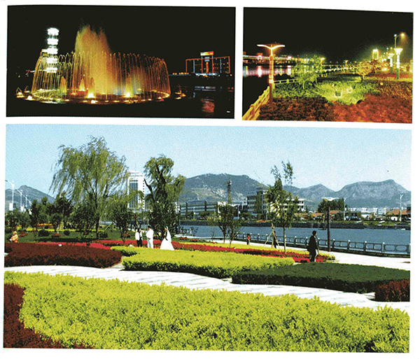 沂河源水景公园是以流经沂源县城的螳螂河为依托,通过治污、蓄水、造绿、亮化、美化等综合治理,建成的集环保、观赏、休闲、娱乐、健身于一体的综合性城市公园。公园全长9.75公里,分人与历史、人与城市、人与自然三个主题景段。成为“天蓝、地绿、水清、灯亮、气爽、楼美”的县城标志性地段。