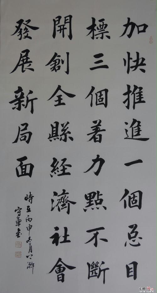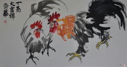 近日,为热烈庆祝中国共产党沂源县第十五届委员会第一次全体会议、政协第十届沂源县委员会第一次会议、沂源县第十八届人民代表大会第一次会议胜利召开,由县委宣传部、县文联、县文化出版局主办,《沂源通讯》编辑部、县书画院、山东新华美术馆沂源馆承办的20余名知名书画家把对党的忠诚,对沂源的热爱尽情地挥洒与笔端,有的挥毫泼墨,书写着励志名言,有的饱蘸颜料,精心绘画出象征吉祥如意的“大鸡”,一幅幅对联公正雅致,一幅幅国画寓意深刻,无不展现出对我县经济社会发展的赞美和对未来的美好憧憬。截止1月16日,30多幅书画精品已装裱完毕,并在新华美术馆展厅展出。